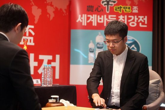 11月21日,第27届农心辛拉面杯三国围棋擂台赛第二阶段比赛在韩国釜山农心酒店开战。杨楷文;
